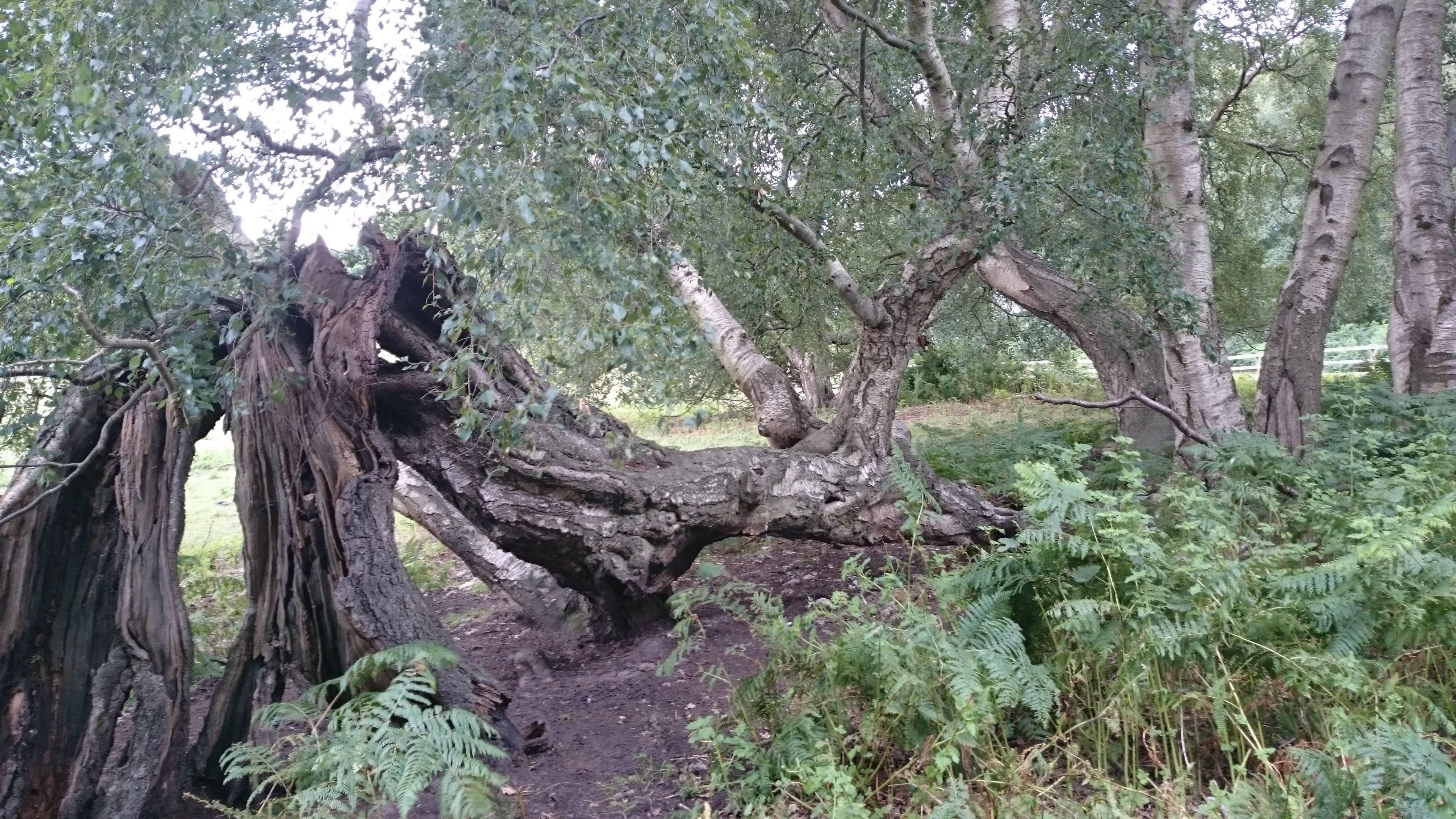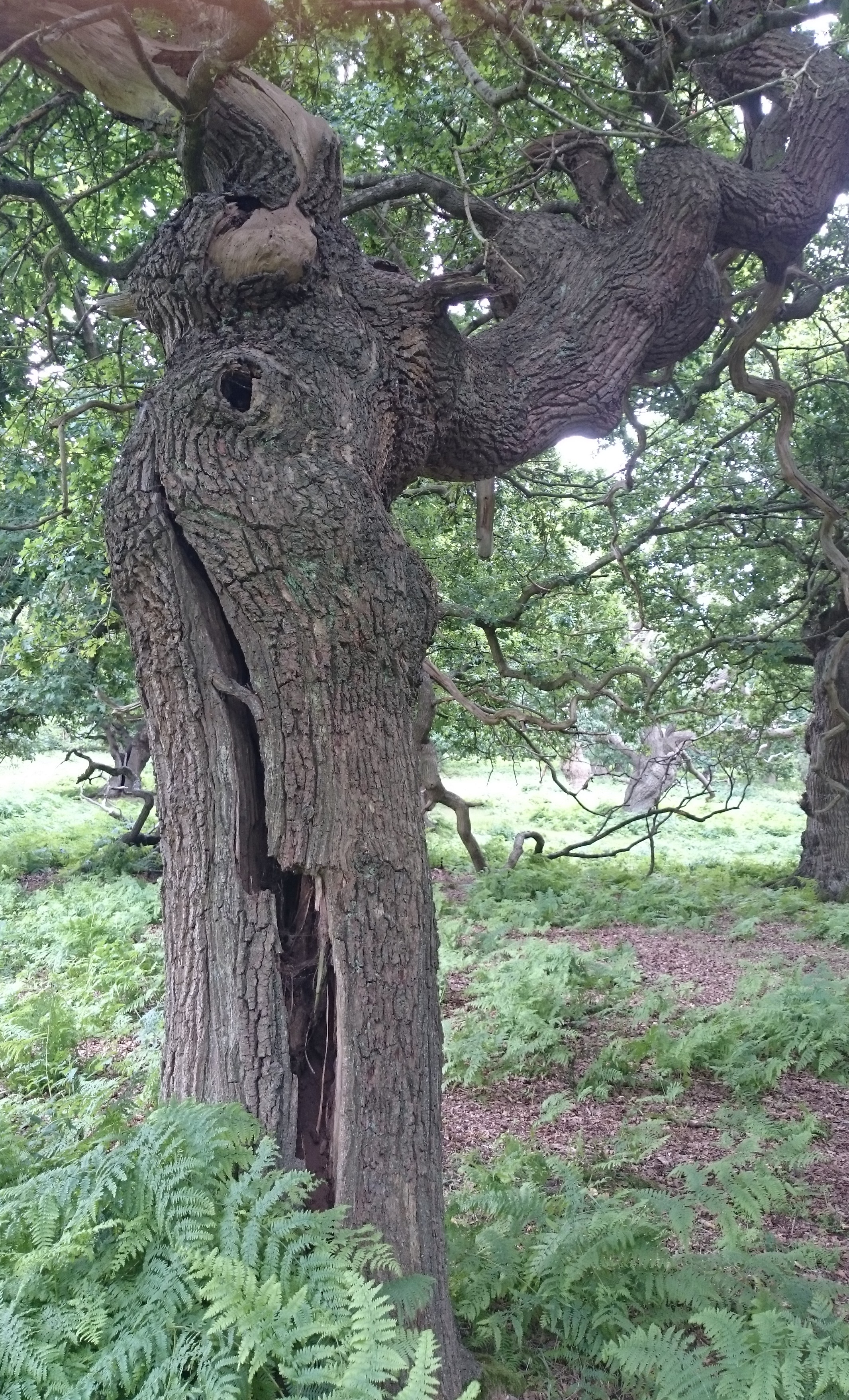 On Thursday, I went down to the Woodland Trust’s Pound Farm in Suffolk to attend an informative day on Chalara fraxinea, or ash dieback, courtesy of MTOA. We were shown the various different stages of the disease on trees at different stages of their life cycle and of different levels of severity of infection. We even came across the fruiting bodies of Hymenoscyphus fraxineus, the fungus responsible for the disease. I did not take pictures as they are widely available. However, I did take pictures at Staveton as the trees there, none ash, were interesting veteran and ancient trees. First pic is a phoenix birch, or a birch which has failed and yet continued growing. In this case, apparently, it started off growing out of an oak (though probably already dead) and when the oak decomposed, after having sent down aerial roots, fell to the ground and continued growing by sending out some of its branches vertically(now the trees to the right).Phoenix Birch Next we have an oak that has cracked due to torsional loads in a rather interesting way.Torsional damage of an oakThen we have an oak that has grown in a peculiar way after possibly having lost its leader early on:peculiarly growing oakAnd finally a pollared oak (most oak here were pollarded):pollarded oakA very nice and informative day out with other arboriculturists.